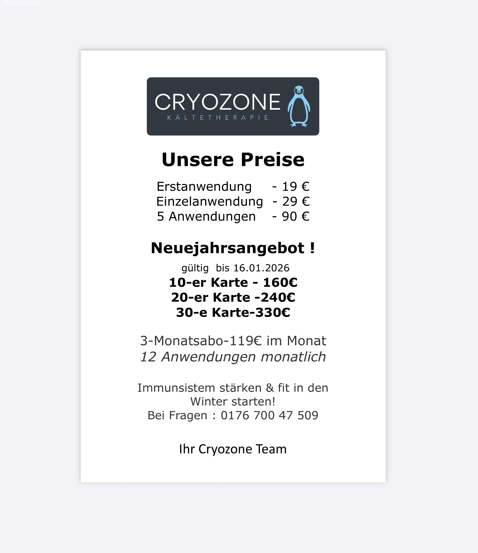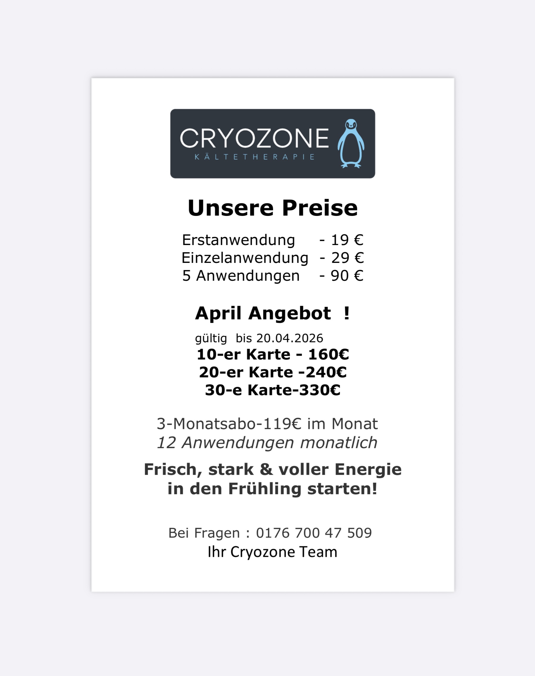 Warum nicht einmal ausprobieren? Tauchen Sie ein in die Welt der Kältetherapie und lassen Sie sich von den positiven Ergebnissen überzeugen. Kontaktieren Sie uns noch heute, um einen Termin zu vereinbaren und mehr über unsere innovativen Behandlungen zu erfahren. Wir freuen uns darauf, Sie persönlich kennenzulernen und Ihnen zu helfen, Ihre Gesundheits- und Schönheitsziele zu erreichen.